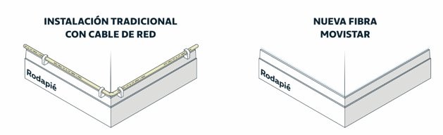 A partir de aquí comienza la instalación de la Fibra FTTR Movistar, para la que no es necesaria ninguna obra. El instalador ira extendiendo un cable ultrafino de fibra, que quedará oculto en los rodapiés y en los marcos de las puertas.